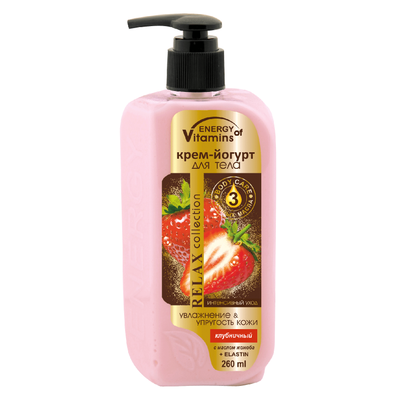 Клубничный крем-йогурт для тела Energy of Vitamins "Увлажнение и Упругость кожи" окутывает кожу нежной текстурой и роскошным ароматом, превращая обычное увлажнение в момент абсолютного наслаждения. Его формула создана так, чтобы работать в нескольких направлениях одновременно: стеариновая кислота, цетеариловый спирт и изопропилмиристат обеспечивают идеальное скольжение и быстрое впитывание, оставляя поверхность кожи бархатной и ухоженной.