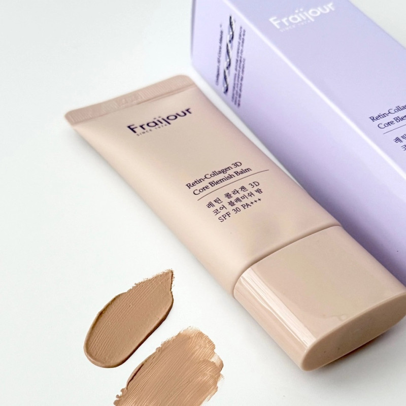 BB-крем для лица Fraijour Retin-Collagen 3D Core Blemish Balm объединяет деликатный тон и активный уход за кожей в одном продукте. Формула содержит комплекс из одиннадцати пептидов, включая медный трипептид и гексапептид ацетил, которые способствуют разглаживанию морщин и улучшению упругости кожи. Комбинация восьми видов коллагена проникает в глубокие слои эпидермиса, восстанавливая плотность и упругость.