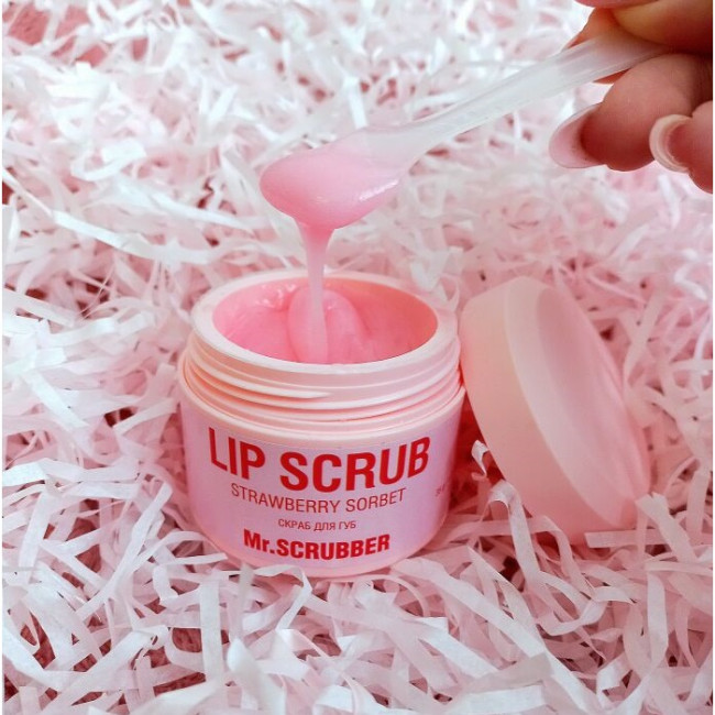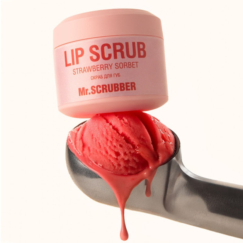 Cкраб для губ Mr.Scrubber Lip Scrub Strawberry Sorbet с ароматом клубничного сорбета — это не просто очищающее средство, а настоящий бьюти-ритуал, сочетающий деликатное действие и эффективный уход. Его основа — натуральный сахар, мягко полирующий поверхность губ, удаляя ороговевшие клетки и придавая им естественную гладкость и нежный блеск. Благодаря этой формуле губы становятся мягкими, ухоженными и подготовленными к дальнейшему нанесению бальзама или помады.