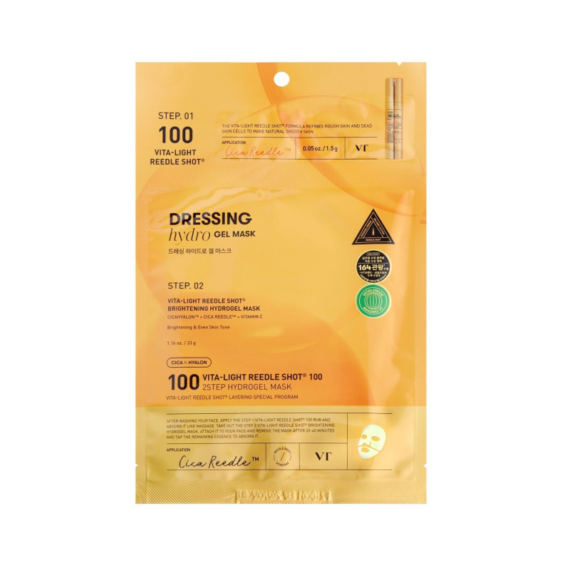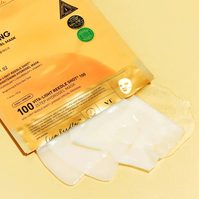 Двухэтапная гидрогелевая маска для лица VT Cosmetics Vita-Light Reedle Shot 100 2step Mask для комплексного ухода за кожей, которая требует увлажнения, восстановления и защиты от ежедневного стресса. Сочетание двух последовательных шагов позволяет добиться более выраженного и продолжительного результата, чем при использовании обычной маски.