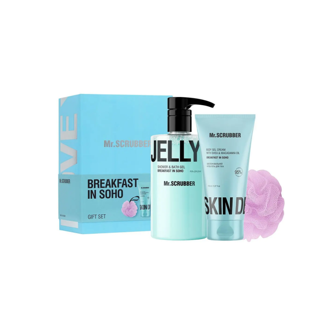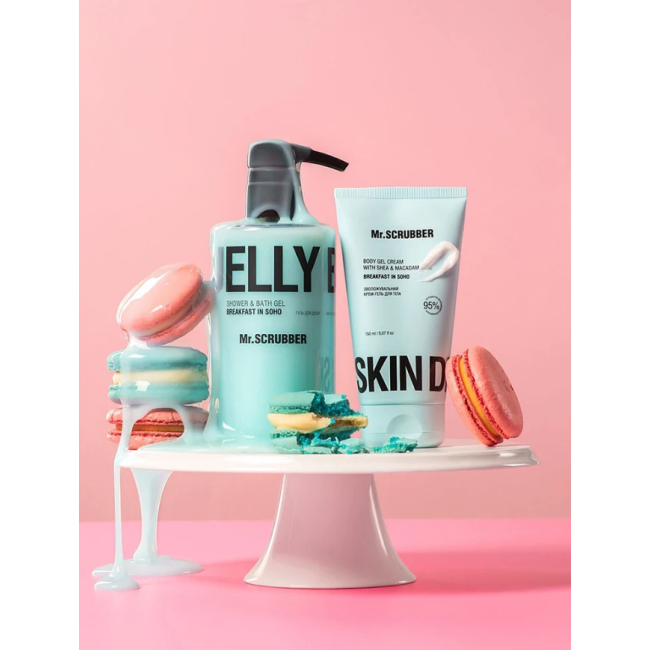 Гель для душа JELLY BUBBLES Breakfast in Soho - дарит коже нежный уход и ощущение комфорта. Формула средства содержит компоненты, которые не раздражают кожу и не пересушивают ее. Гель при контакте с водой образует шелковистую пену, которая мягко очищает, увлажняет и придает коже гладкость. В составе есть морская соль - дезинфицирует кожу, благодаря высокому содержанию натрия и кальция, и способствует заживлению мелких повреждений. Лимонная кислота - мягко отшелушивает, удаляет омертвевшие клетки и стимулирует обновление кожи. Масло персиковых косточек - устраняет шелушение и сухость, выравнивает текстуру и повышает упругость. Масло авокадо - смягчает, питает даже очень сухую кожу, восстанавливает защитный барьер и предотвращает потерю влаги. Масло ши - интенсивно увлажняет, успокаивает и придает коже шелковистость. Гель для душа создает деликатное очищение кожи, интенсивно увлажняет и питает кожу. Средство от Mr.Scrubber помогает сделать кожу мягкой, гладкой и способствует заживлению микротрещин.