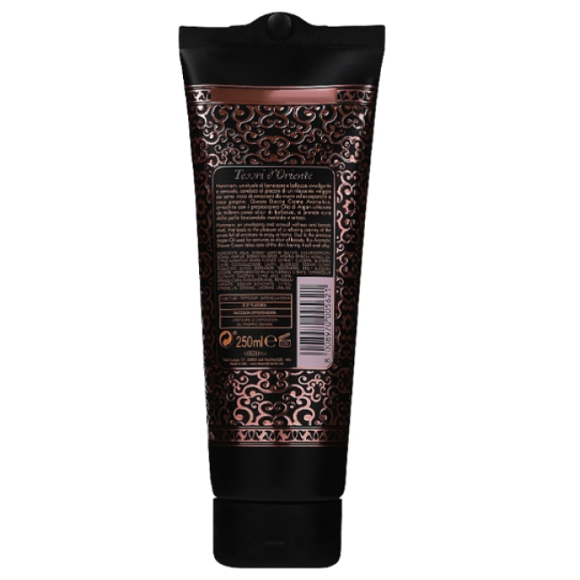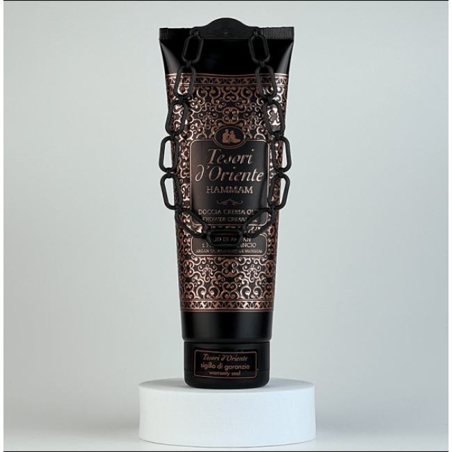 Гель для душа Hammam - имеет насыщенную кремовую текстуру, которая мягко очищает кожу, превращаясь в пену при контакте с водой. Формула обогащена ценным аргановым маслом, которое интенсивно питает, увлажняет и смягчает кожу, делая ее гладкой и шелковистой. Средство эффективно устраняет загрязнения, предотвращает сухость и обезвоживание, помогает уменьшить шелушение и раздражение. Аромат наполнен доминирующими нотками цитруса, ванили и мускуса, что дарит ощущение свежести, комфорта и гармонии. Финальные нотки представлены мускусом, амброй и древесными аккордами в сочетании со сладкой ванилью. Гель помогает предотвратить сухость и обезвоживание, уменьшает шелушение, раздражение и покраснение. Средство от Tesori d`Oriente - универсальное средство, которое имеет удобный тревел-формат тюбика, идеальный для путешествий.