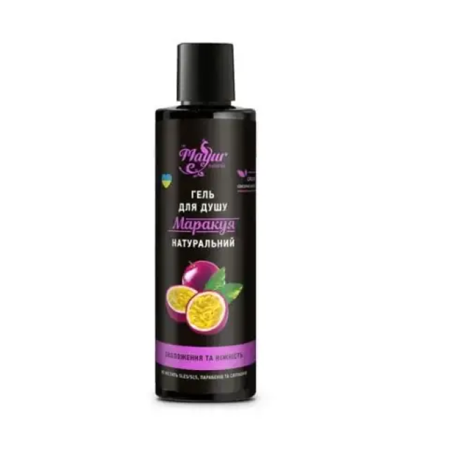Гель для душа Маракуя - обеспечивает деликатный и эффективный уход, который дополнен восхитительным ароматом. Такой ингредиент, как маракуя, богат витаминами А, В, С, Е и Н, которые улучшают состояние кожи, тонизируют, стимулируют кровообращение и освежают кожу. Экстракт кокоса мягко питает, смягчает и дарит приятное ощущение гладкой кожи. Гель окутывает тело ярким тропическим ароматом маракуи, наполняет кожу здоровьем и бодростью. Средство не пересушивает кожу и не способствует шелушению. Гель для душа Mayur дарит ощущение обновления, наполняет бодростью и свежестью.