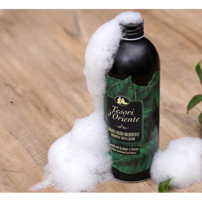 Гель-пена Kashmir Sandalwood & Vetiver - средство нежно и бережно очищает кожу, а также окутывает тело богатым ароматом. Активная формула средства эффективно очищает кожу, не нарушая ее естественный уровень pH и предотвращает сухость и раздражения. В состав входят питательные компоненты, которые обеспечивают деликатное смягчение и увлажнение кожи, успокаивают раздражения и помогают устранить признаки усталости. Средство наполнено ароматом ветивера и сандала, которые демонстрируют ароматерапевтический эффект и снимают напряжение. Формула гель-пены мгновенно превращается в нежную пену при контакте с водой, окутывая кожу и превращая обычную гигиеническую процедуру в настоящий спа-уход. Средство от Tesori d`Oriente можно использовать как гель для душа и пену для ванны.