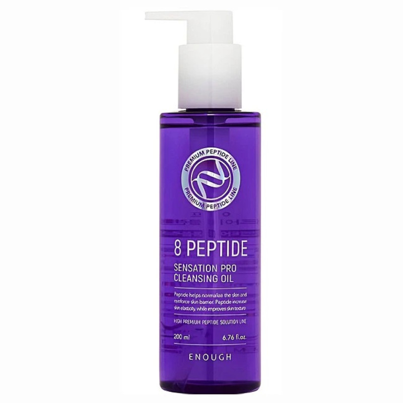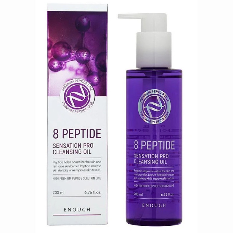 Гидрофильное масло с пептидами ENOUGH 8 Peptide Cleansing Oil – комплексно очищает кожу, сочетает глубокую очистку с бережным уходом. Масло легко удаляет макияж, себум и загрязнение, а при контакте с водой превращается в нежное молочко, обеспечивая комфортную очистку без пересушивания.