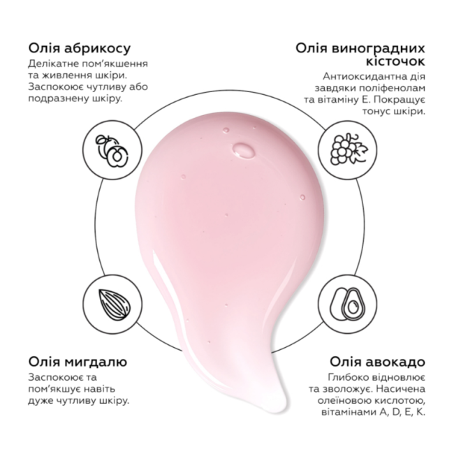 Состав: Glycerin, Prunus Armeniaca Kernel Oil, Prunus Amygdalus Dulcis (Sweet Almond) Oil, Macadamia Ternifolia Seed Oil, Aqua, Sucrose Palmitate, Jojoba (Buxus Chinensis) Oil, Sucrose Laurate, Parfume, CI 45100.