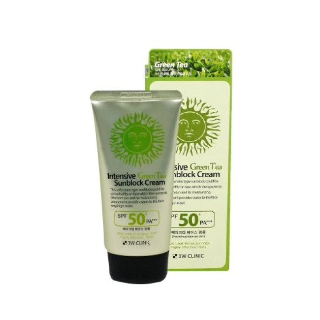 Интенсивный солнцезащитный крем с зеленым чаем 3W Clinic Intensive Green Tea Sunblock Cream – солнцезащитный крем, сочетающий мощную SPF-защиту и уходовую формулу. Его мультифункциональное действие обеспечивает не только эффективную блокировку UVA/UVB-лучей, но и деликатное увлажнение и антиоксидантный уход.
