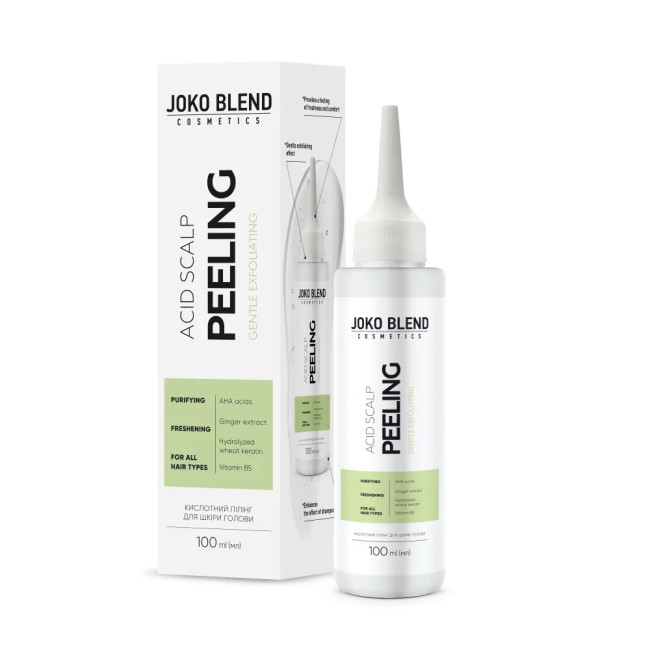 Кислотный пилинг для кожи головы Joko Blend – эффективное средство для глубокой очистки и обновления. Этот уникальный продукт создан для тех, кто стремится сохранить здоровье волос и кожи, избавиться от чрезмерной сальности, перхоти и загрязнений. Благодаря комплексному сочетанию природных и современных активных компонентов, он деликатно, но эффективно обновляет верхний слой кожи, активизируя ее регенерацию.
