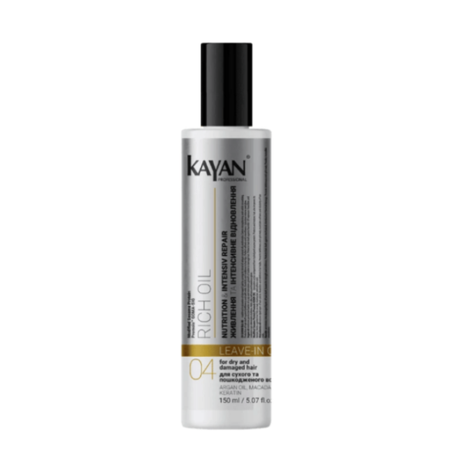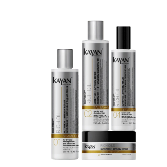 Профессиональный кондиционер RICH OIL - средство, в основе которого гидролизат белка кунжута, он глубоко проникает в волосы и обеспечивает их мягкость, гладкость и естественный блеск. В составе есть пептиды - увлажняют и питают волосы, укрепляют и разглаживают кутикулу, придают мягкость и эластичность, Аргановое масло - интенсивно питает, восстанавливает структуру волос и обеспечивает UVA-защиту. Кератин - заполняет поврежденные участки, воссоздает естественный кератиновый слой. Масло макадамии - питает и укрепляет корни, стимулирует рост волос и устраняет перхоть. Средство демонстрирует восстанавливающее воздействие на состояние волос, оно питает, увлажняет, насыщает витаминами, стимулирует рост, восстанавливает поврежденные участки. Кондиционер от Kayan Professional предотвращает ломкость и сечение волос, улучшает их защитные функции, придает роскошный блеск и облегчает расчесывание.