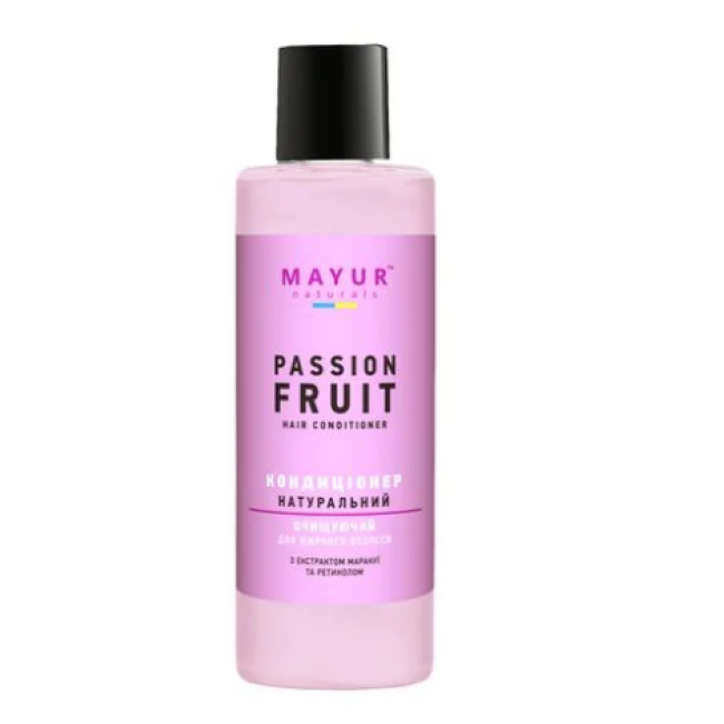 Кондиционер Маракуйя - средство, которое сочетает в себе эффективное очищение, легкий уход и насыщенный экзотический аромат. Формула кондиционера наполнена комплексом натуральных ингредиентов, которые мягко очищают кожу головы и волосы, помогая регулировать выработку кожного себума. В составе есть экстракт маракуйи, который проявляет увлажняющие, освежающие и саморегулирующие свойства. Он способствует нормализации работы сальных желез, уменьшает жирность, при этом не пересушивая кожу. Органический экстракт кокоса интенсивно увлажняет и укрепляет структуру локонов, предотвращает ломкость и появление секущихся кончиков. Кондиционер легко распределяется по волосам, не утяжеляет пряди и не вызывает их ломкости, а при смывании не способствует повреждению кончиков. Средство от Mayur делает волосы мягкими, послушными и гладкими.