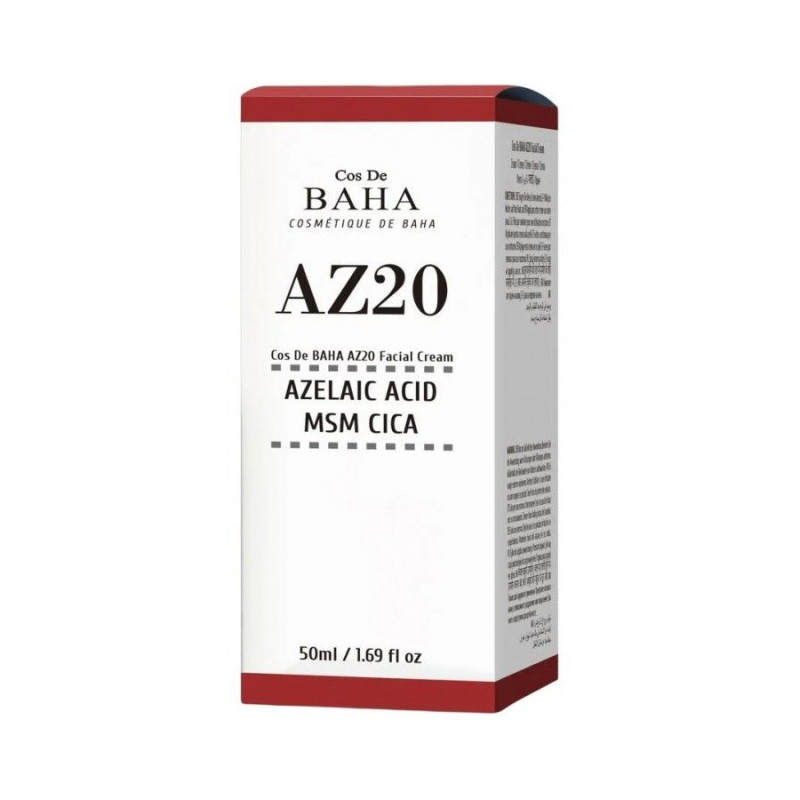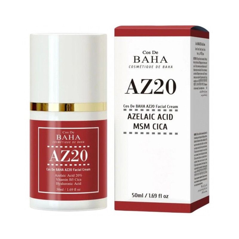 Крем для лица с азелаиновой кислотой 20% Cos De BAHA AZ20 Cream с насыщенным и тщательно сбалансированным составом разработан для ухода за проблемной, чувствительной и тусклой кожей. Азелаиновая кислота является ключевым активным компонентом – она известна своими противовоспалительными и антибактериальными свойствами, эффективно борется с акне, постакне, розацеа и пигментацией, выравнивая тон и текстуру кожи.