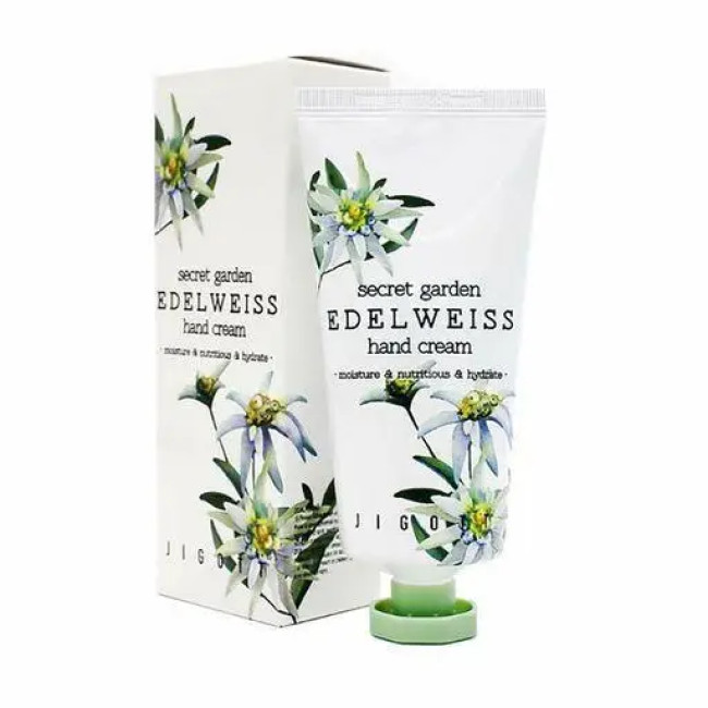 Крем Jigott Secret Garden Edelweiss Hand Cream - предназначен за уходом за проблемной кожей, он прекрасно восстанавливает и заживляет кожу, смягчает грубые части, интенсивно питает и увлажняет. В составе есть эдельвейс, который увлажняет и делает кожу влажной и гладкой. В этом креме для рук содержится леонтоподиум альпийский, который борется с огрубевшей кожей и смягчает ее. Действующие компоненты, входящие в состав, устраняют пигментацию, заживляют мелкие трещинки, царапинки и раны. Крем обладает высокими антиоксидантными свойствами и повышает защитные функции кожи. Крем от Jigott имеет приятный цветочный аромат, который быстро впитывается в кожу.