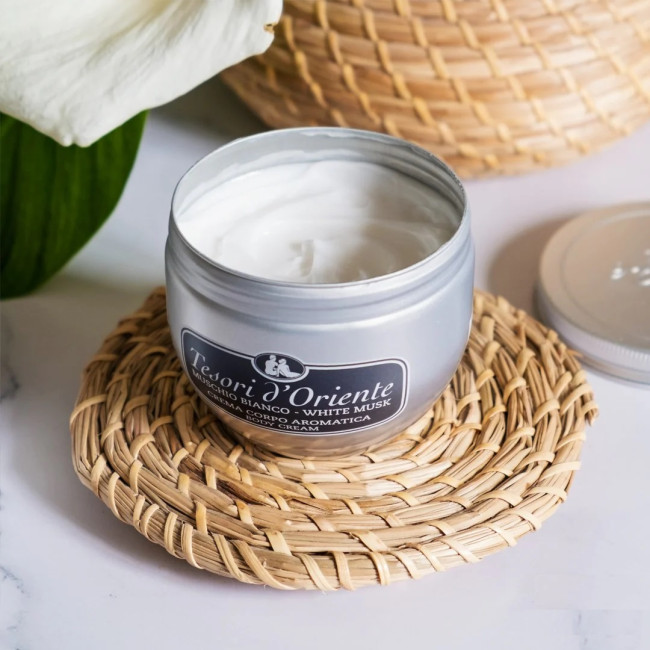 Крем для тела Tesori d’Oriente Muschio Bianco дарит коже мгновенное чувство комфорта и безупречную гладкость. Благодаря легкой бархатной текстуре средство быстро впитывается, не оставляя ощущение отягощения и мгновенно насыщает клетки необходимой влагой. Формула работает на глубокое восстановление защитного барьера, предотвращая сухость и шелушение в течение всего дня. Кожа становится невероятно мягкой на ощупь, упругой и сияющей, излучая здоровье и природную красоту.
