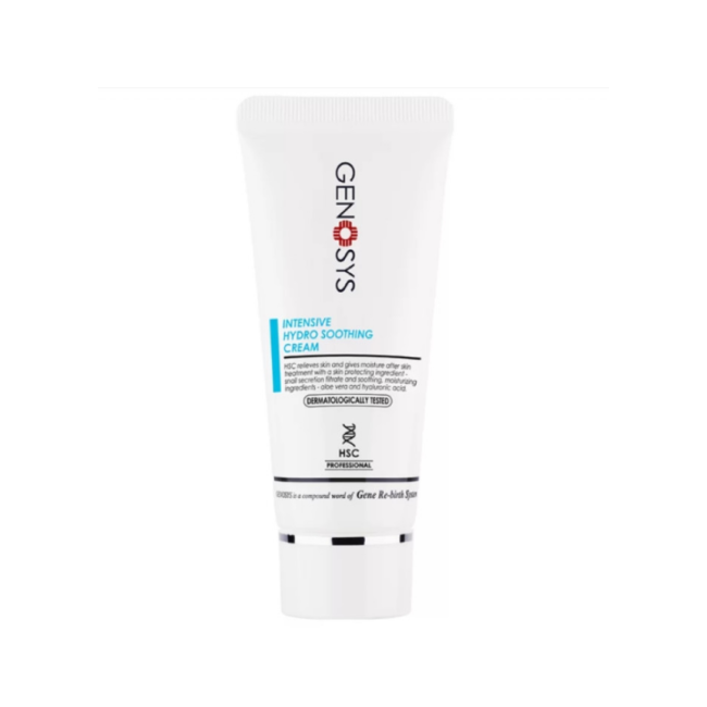 Крем INTENSIVE HYDRO SOOTHING CREAM эффективное средство для восстановления и глубокого увлажнения кожи. Крем разработан для ухода после инвазивных процедур, так как он способствует быстрой регенерации клеток, успокаивает раздражение, снимает покраснение. Крем имеет легкий охлаждающий эффект для мгновенного комфорта и глубоко увлажняет, предупреждая сухость и стянутость. В составе есть бетаин - прекрасно увлажняет и предотвращает возможные воспаления. Экстракт листьев алоэ - охлаждающие свойства, помогает при ранах, акне, высыпаниях и покраснениях. Фильтрат секреции улитки - заживляющие свойства, способствует лечению высыпаний и быстрому заживлению тканей. Крем заметно разглаживает и смягчает кожу. Средство от GENOSYS активизирует процессы регенерации и восстановления, поддерживает водный баланс и выравнивает микрорельеф.