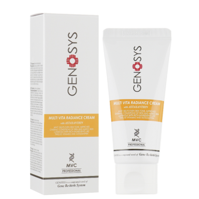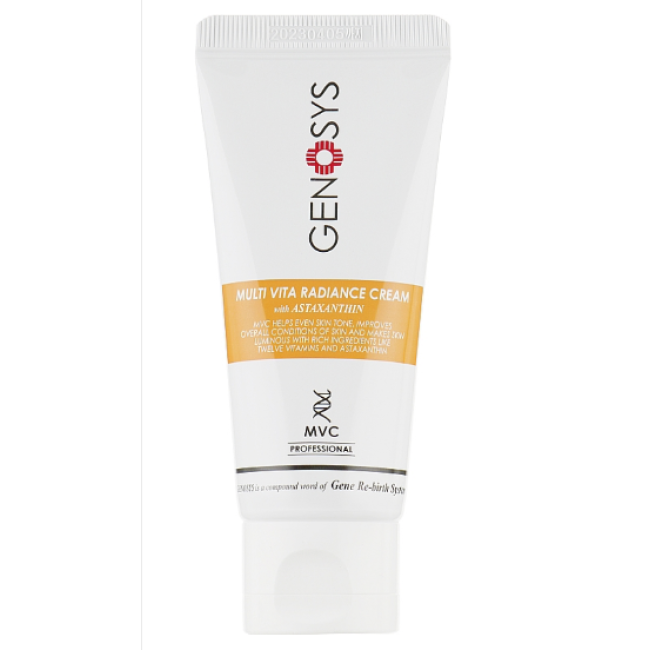 Крем MULTI VITA RADIANCE CREAM - создан на основе витаминного комплекса и мощного антиоксиданта. Крем глубоко питает, увлажняет кожу, восстанавливает и разглаживает микрорельеф. В составе есть масло макадамии, которое образует на поверхности кожи защитный барьер. Пальмитолеиновая кислота - ускоряет заживление микроповреждений и уменьшает покраснения. Керамиды - укрепляют липидный барьер, повышают защитные функции кожи. Экстракт корня солодки - блокирует выработку тирозиназы, поэтому крем поможет уменьшить пигментацию. Средство осветляет и выравнивает тон кожи, защищает от воздействия свободных радикалов и стимулирует выработку коллагена. Средство от GENOSYS поможет нормализовать гидробаланс, снять покраснения и стимулирует коллаген.