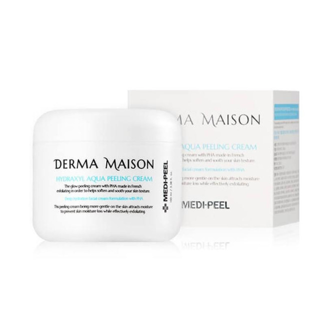 Натуральный крем-пилинг Derma Maison Hydraxyl Aqua Peeling Cream интенсивно гидратирует дерму любого типа, отшелушивает омертвевшие эпителиальные частички, выравнивает микрорельеф и тон лица, ускоряет регенерацию клеток.