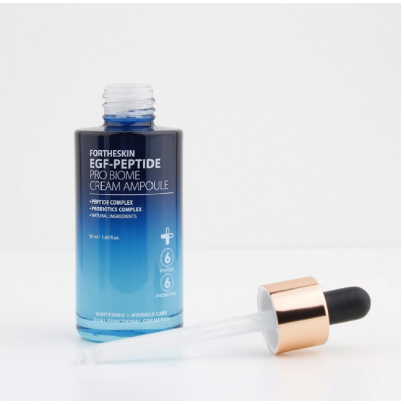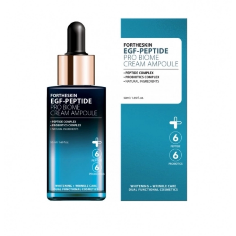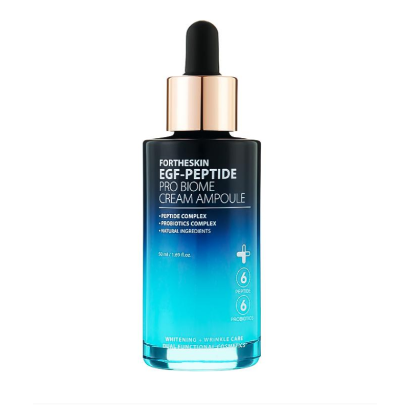 Крем-сыворотка EGF-Peptide Pro Biome Cream Ampoule - инновационное средство для комплексного ухода за кожей, помогает уменьшить возрастные изменения и поддерживать здоровый микробиом эпидермиса. В составе есть 6 пептидов, 9 пробиотиков, которые глубоко увлажняют, разглаживают морщины, выравнивают тон и придают коже мягкость и шелковистость. Средство насыщает кожу полезными компонентами, которые проникают вглубь и стимулируют регенерацию кожи. Крем-сыворотка активирует выработку коллагена и эластина, делает кожу упругой и эластичной. Средство оказывает коже лифтинг-эффект, предотвращая обвисание проблемных участков и проявляет антиоксидантную защиту - нейтрализует свободные радикалы и замедляет старение. Средство от Fortheskin идеальное решение для сохранения молодости, сияния и здоровья кожи.