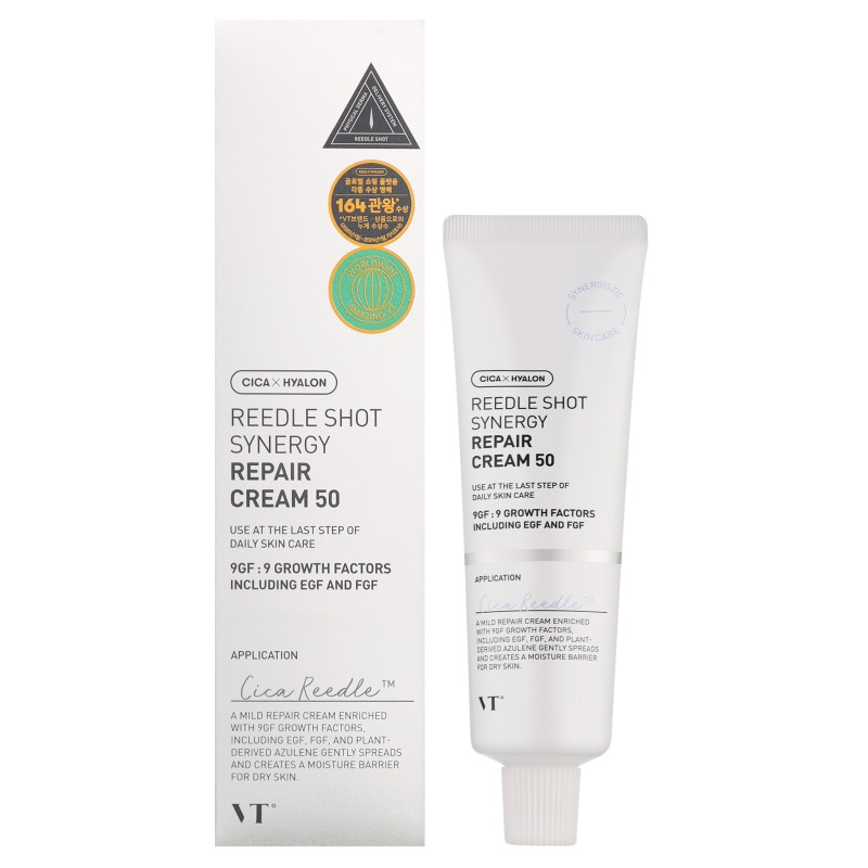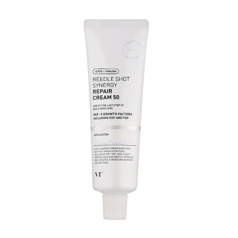 Крем VT Cosmetics Reedle Shot Synergy Repair Cream 50 – настоящая находка для тех, кто стремится соединить глубокое увлажнение, успокоение и антивозрастный уход в одном средстве. Формула обогащена церамидами (NP, NS, EOP), холестерином и гиалуроновой кислотой, которые совместно восстанавливают липидный барьер кожи, уменьшают сухость и укрепляют естественную защиту.