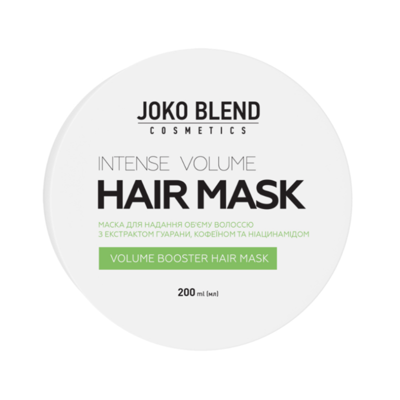 Маска Intense Volume - эффективное средство, которое восстанавливает объем, стимулирует рост волос и обеспечивает интенсивное увлажнение. Формула маски создана для укрепления прикорневого объема, делая корни более крепкими, упругими и наполненными здоровым блеском. В составе есть экстракт гуараны, который наполняет энергией волосы, повышает их эластичность и здоровый блеск. Кофеин - стимулирует волосы, укрепляет и повышает упругость, помогает восстановить поврежденные участки. Ниацинамид - интенсивно увлажняет, делает волосы мягкими и шелковистыми, уплотняет их структуру, уменьшает пушистость и облегчает расчесывание. Маска укрепляет тонкие и ослабленные волосы, придавая им заметный объем. Средство от Joko Blend обеспечивает интенсивное питание и восстановление волос, благодаря составу активных компонентов.