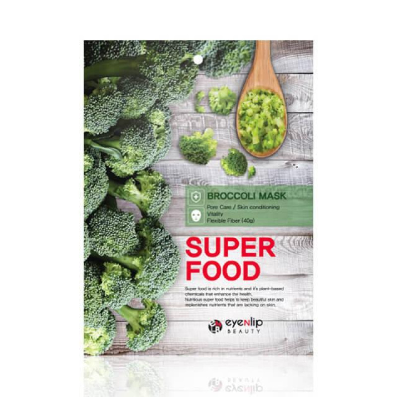 Натуральная тканевая маска Super Food Broccoli Mask возвращает дерме свежесть, тонизирует, запускает регенерационные процессы, предотвращает раннее старение.