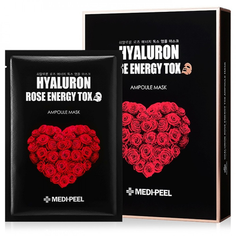 Тканевая маска для лица MEDI-PEEL Hyaluron 100 Rose Energy Tox - интенсивно питает кожу, разглаживает морщинки и подтягивает овал лица, уплотняет дерму, делает её более упругой, эластичной, выравнивает тон лица, помогает восстановить защитный барьер кожи.