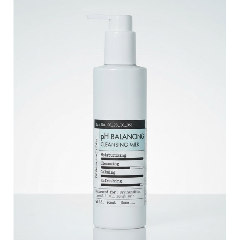 Молочко для лица Derma Factory pH Balancing Cleansing Milk представляет собой мягкое очищающее средство, которое обеспечивает бережный уход без повреждения гидроліпідного слоя. Продукция корейского бренда Derma Factory славится своими физиологичными формулами, и это молочко не исключение. Оно эффективно растворяет повседневные загрязнения, деликатно очищает поры и успокаивает воспаления. Если ваша привычная пенка и мыло оставляют чувство дискомфорта, это средство станет идеальным решением, возвращая коже эластичность, гладкость и здоровый pH-баланс.
