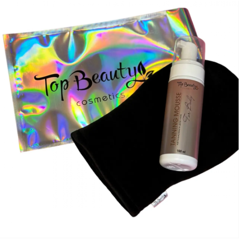 Мусс-автозагар для тела Top Beauty Tanning Mousse в дуэте с мягкой перчаткой для нанесения. Все, что нужно для равномерного, естественного загара – уже в твоих руках.