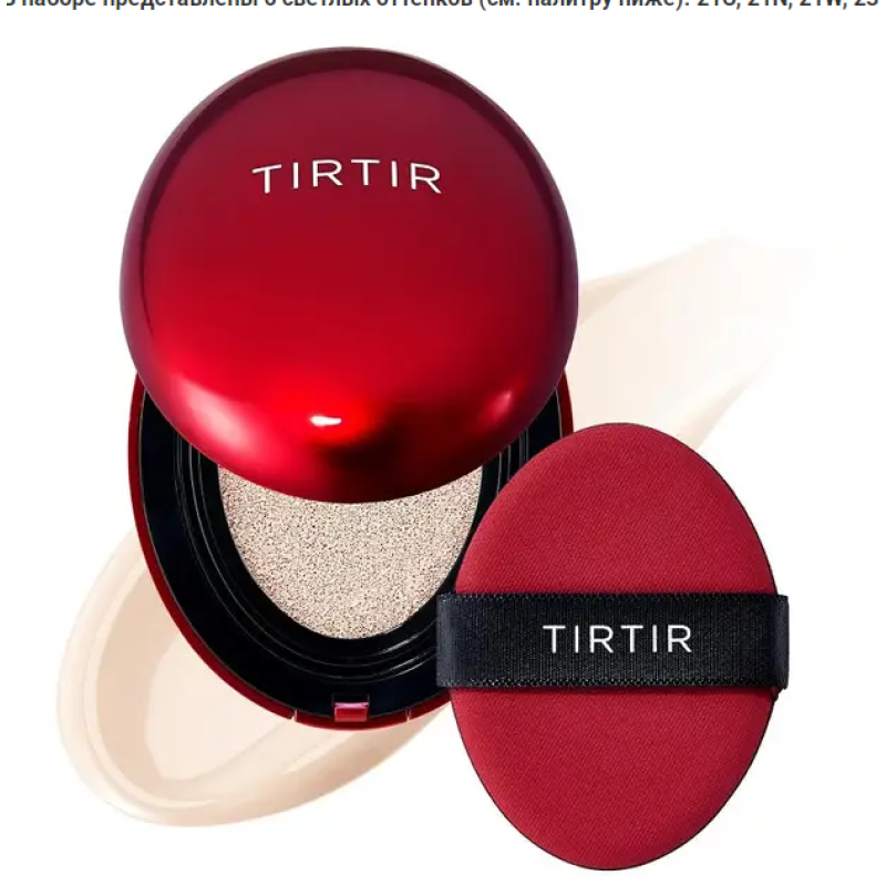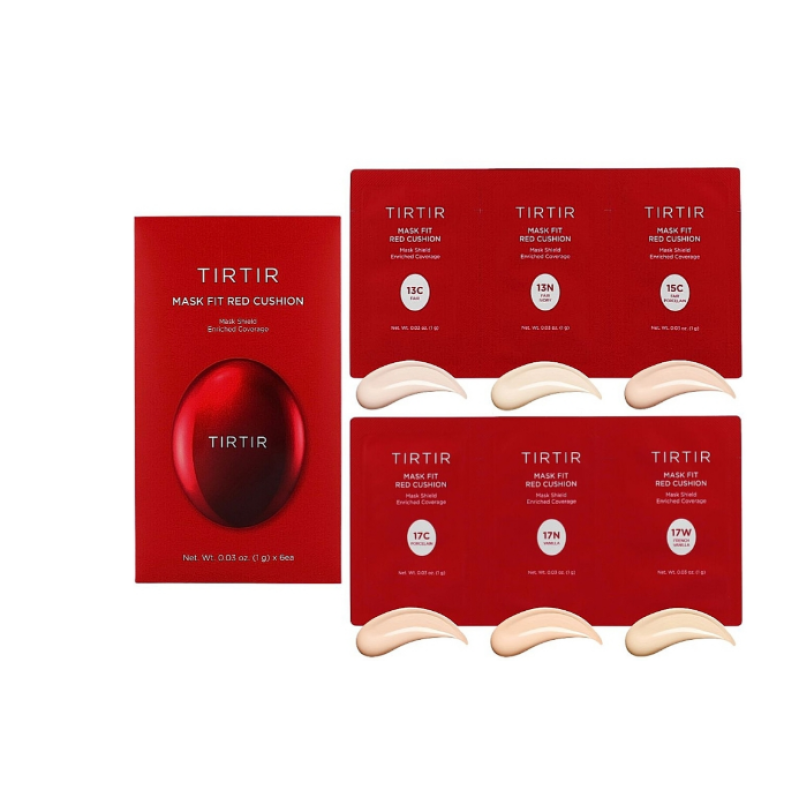 Набор Mask Fit Red Cushion 6 Shade Trial Kit - хит бренда, который маскирует недостатки кожи, скрывает пигментные пятна и темные круги под глазами, может держаться на коже до 72 часов. Кушоны имеют плотное покрытие, которое удобно растушевывается на крышке и используется как палитра. В составе тональной основы есть экстракт цветов гибискуса - насыщает антиоксидантами, увлажняет и смягчает, замедляет процессы старения. Экстракт красного прополиса - увлажняет, оказывает противовоспалительное и антибактериальное действие, уменьшает морщины и деликатно осветляет кожу. Астаксантин - обеспечивает защиту от повреждений, уменьшает морщины и осветляет возрастную пигментацию. Ниацинамид - регулирует работу сальных желез, устраняет жирный блеск, осветляет и предотвращает появление пигментации. Аденозин - антивозрастной компонент, стимулирует выработку коллагена, отвечающего за упругость кожи. Мини-кушоны выравнивают тон кожи, дарят естественный и свежий вид. Средства от Tirtir помогают удерживать влагу в коже и не пересушивают ее. Набор из 6 оттенков поможет легко подобрать тот, который идеально подойдет для вашего оттенка кожи.