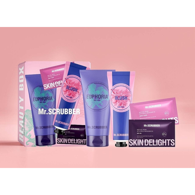 Набор Beauty Box Mr.Scrubber представляет собой эксклюзивную коллекцию бестселлеров для комплексного ухода за кожей, которые обеспечивают профессиональный результат в домашних условиях. Натуральная косметика от популярного бренда Mr.Scrubber направлена на глубокое очищение, питание и деликатное обновление эпидермиса. Данный набор косметики эффективно борется с признаками усталости кожи, устраняет ороговевшие частицы и подготавливает тело к интенсивному увлажнению. Синергия активных масел и природных скрабирующих элементов помогает улучшить микроциркуляцию, выровнять микрорельеф и придать коже здоровое сияние и невероятную мягкость.