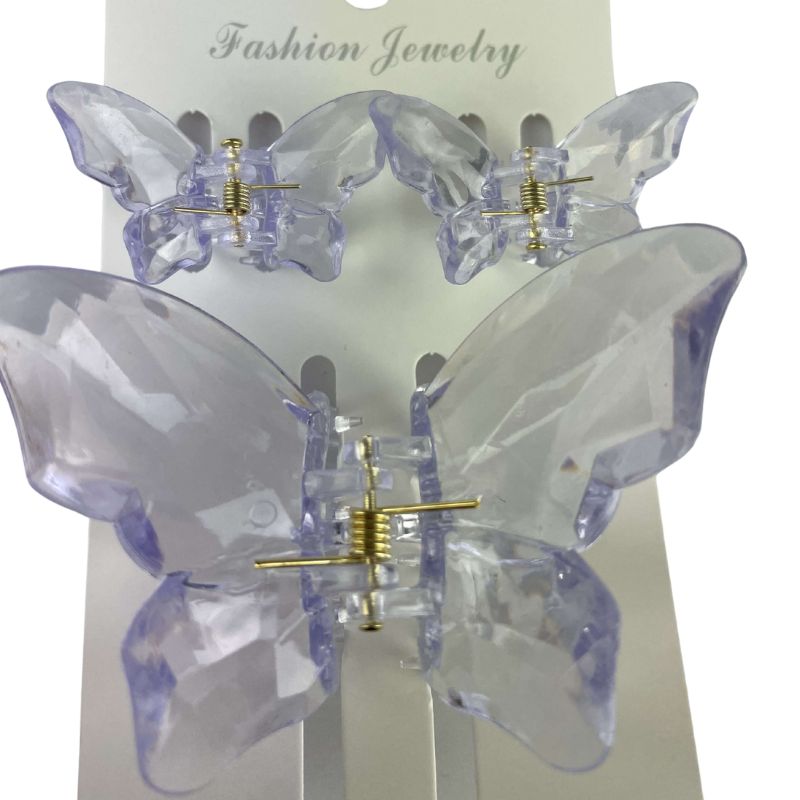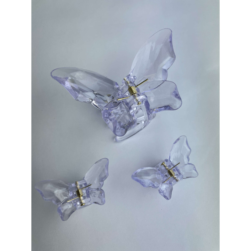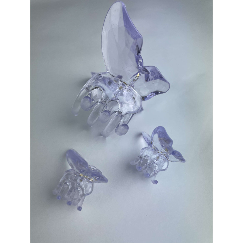 Набор заколок для волос Hair Clip Set Crystal Violet – это изящный и стильный аксессуар, который подчеркнет вашу женственность и придаст образу легкости. В комплекте три заколки: одна большая (8 см) и две меньшие (4 см). Все они выполнены в форме очаровательных бабочек из прозрачного пластика с нежным фиолетовым оттенком, что создает эффект хрусталя.