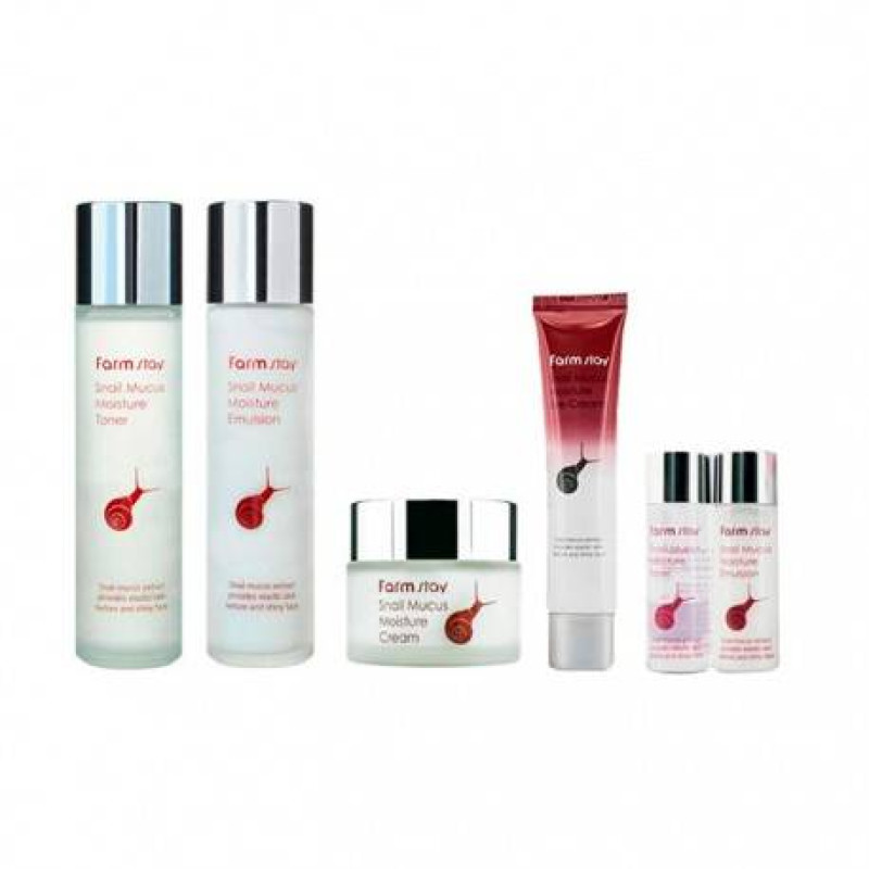 Набор SNAIL MUCUS MOISTURE SKIN CARE 4 SET состоит из тонера, эмульсии, крема для век, крема для лица и двух миниатюр (тонер+ эмульсия). Эти продукты насыщают клетки минералами, витаминами и аминокислотами, которые оздоравливают дерму на клеточном уровне.