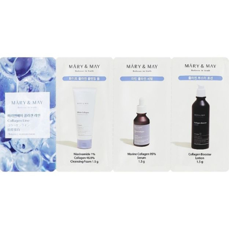 Набор миниатюр для кожи с коллагеном Mary&May Collagen Line 3Step Sachet (Cleansing Foam 1,5g + Seru)