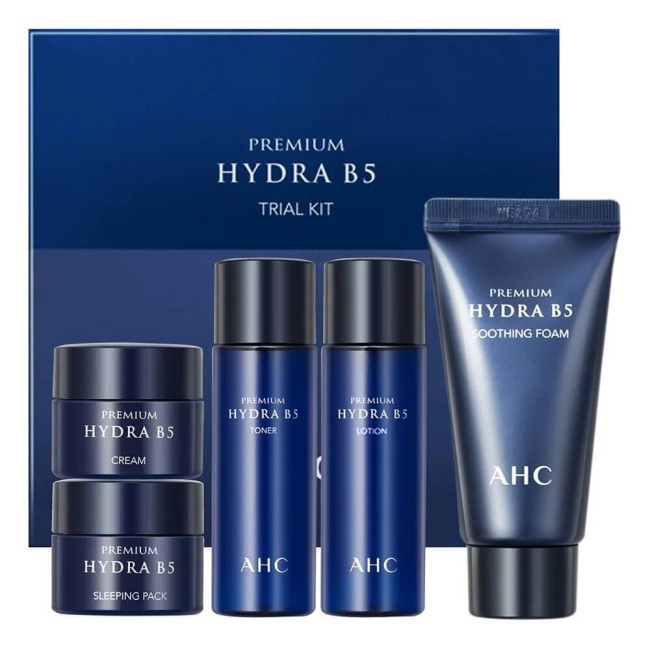 Набор миниатюр косметики Premium Hydra B5 Trial Kit AHC выручит дерму, склонную к пересыханию, от потери влаги, поможет сохранить водный баланс, способствует защите от внешних факторов. В набор входит Успокаивающая пенка Soothing Foam 30ml, Тоник увлажняющий Toner 25ml, Лосьон увлажняющий для лица Lotion 25ml, Крем для увлажнения лица Cream 7ml, Ночная крем-маска для глубокого увлажнения Sleeping Pack 7ml.