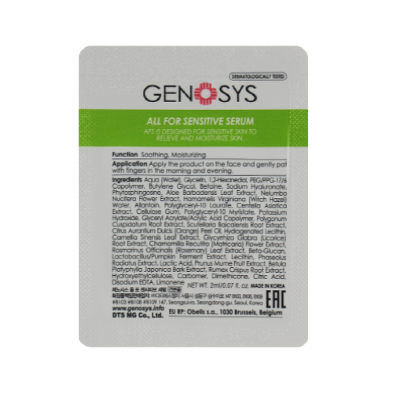 Тестер наносыроватки для чувствительной кожи Genosys All for Sensitive Serum содержит в своем составе комплекс активных компонентов, обеспечивающих увлажнение, питание и восстановление кожи.