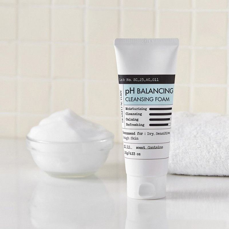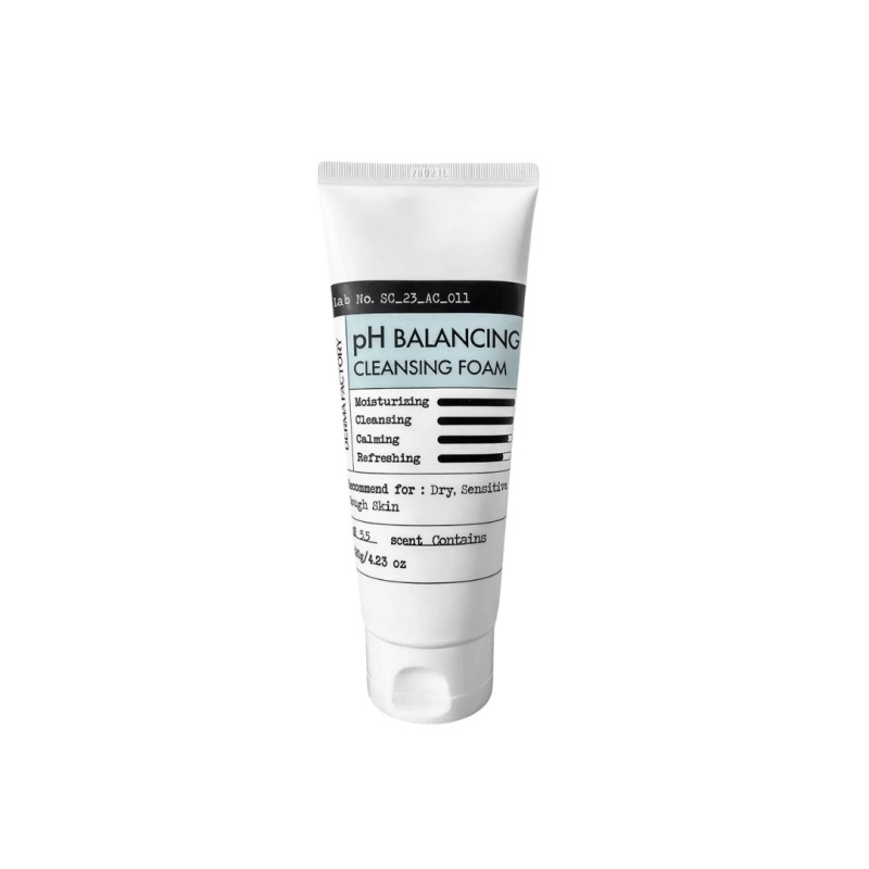 Нейтральная пенка для умывания Derma Factory Ph Balancing Cleansing Foam 120g – это мягкое средство, предназначенное для поддержания естественного pH-баланса кожи, эффективного удаления загрязнения и демакияжа.