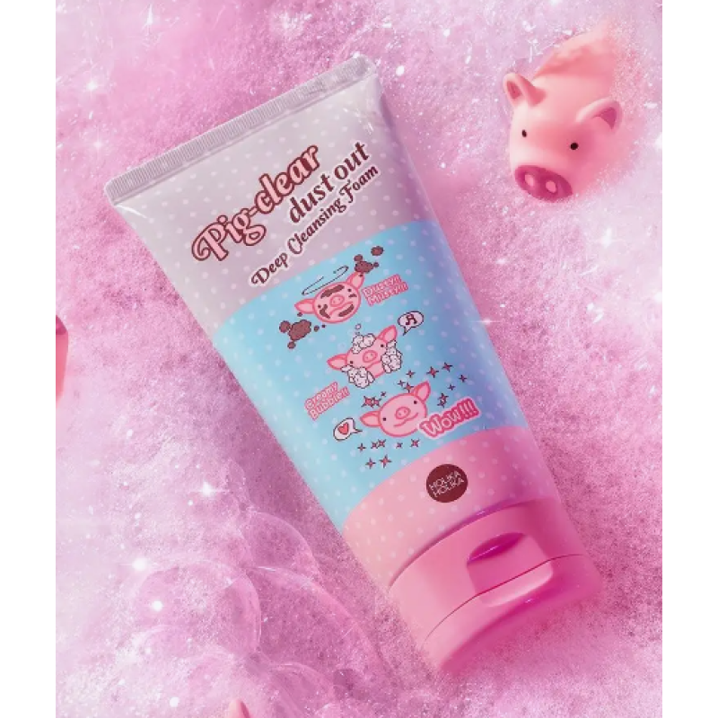 Пенка Pig Clear Dust Out Deep Cleansing Foam - стильное и эффективное средство для очищения кожи. Упаковка украшена мультяшными хрюшками и относятся к популярной серии. При контакте с водой, это средство превращается в пенку с микропузырьками, которая глубоко проникает в расширенные поры, очищая их и буквально выталкивая загрязнения наружу. Активная формула пенка деликатно удаляет ороговевшие клетки и выравнивает тон кожи. В состав входит синтезированный коллаген, который может создавать омолаживающий эффект. Средство идеально подходит для очищения жирной и проблемной кожи, уменьшит проявления комедонов, воспалений и акне. Пенка от Holika Holika делает кожу свежей, сияющей и гладкой.