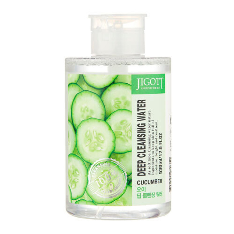 Очищающая вода для лица Jigott Cucumber Deep Cleansing Water 530ml — универсальное средство для глубокой очистки, которое отлично подходит как для снятия макияжа, так и для ежедневного ухода за кожей. Вода деликатно удаляет загрязнения, излишки себума и даже водостойкий макияж, оставляя свежесть и ухоженность после каждого использования.