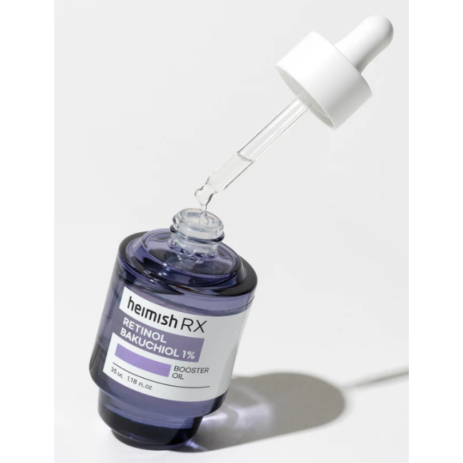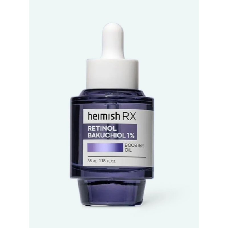 Масло бустер Rx Retinol Bakuchiol Booster Oil - создано для восстановления и омоложения кожи благодаря сочетанию ретинола и бакучиола, которые повышают упругость, помогают бороться с признаками старения. Бакучиол - проявляет свои омолаживающие свойства, при этом не раздражая кожу, поскольку является мягким растением. Ретинол - стимулирует синтез коллагена, уменьшает морщины и делает кожу более гладкой. Витамин Е - защищает клетки от свободных радикалов, выравнивает рельеф кожи. Средство работает над уменьшением глубины морщин, сужает поры, повышает эластичность и разглаживает поры. Масло от Heimish помогает поддерживать молодость кожи и убирать недостатки, которые появляются с возрастом.