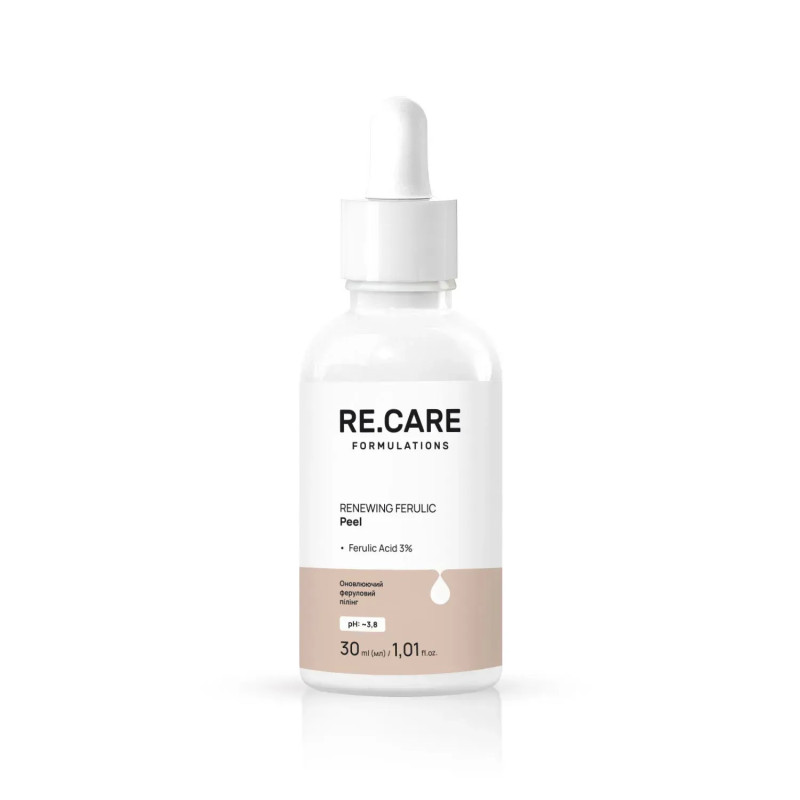 Обновляющий феруловый пилинг Renewing Ferulic Peel Re.Care эффективно обновляет кожу, объединяя сразу два актива, работающих на чистоту, ровный тон и гладкую текстуру. Формула минималистичная, но мощная, сосредоточена на результате и комфорте использования.