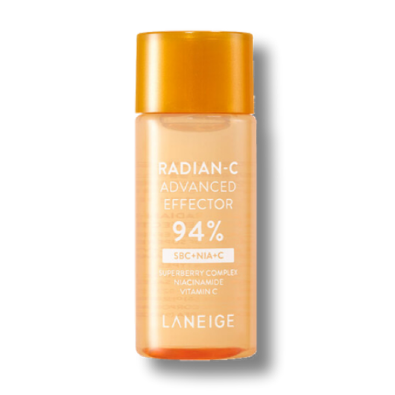 Эссенция Radian C Advanced Effector 94% - мощное средство, улучшающее тон, придает сияние коже и энергии. В составе средства есть тройной витаминный комплекс, что делает эссенцию эффективной в борьбе с тусклостью, признаками усталости и неровным тоном кожи. Средство освещает, увлажняет и выравнивает тон кожи, уменьшает пигментацию, следы постакнет, покраснение и укрепляет защитный барьер кожи. Эссенция удаляет отмершие клетки, возвращая свежесть и естественную яркость кожи. 94% витаминного экстракта, который действует как мощный антиоксидант, в несколько раз эффективнее витамина С, активно питает и увлажняет кожу. Таурин – мягко отшелушивает, стимулирует клеточное обновление и усиливает естественное сияние кожи. Ниацинамид – осветляет пигментные пятна, выравнивает тон и текстуру и улучшает общий тон кожи. Средство обладает мощным комплексом компонентов, который эффективно борется с признаками старения и уменьшает проявления пигментации. Средство от Laneige идеально подходит для тех, кто стремится к здоровому сиянию кожи, равному тону и надежной защите от внешних стрессовых факторов.