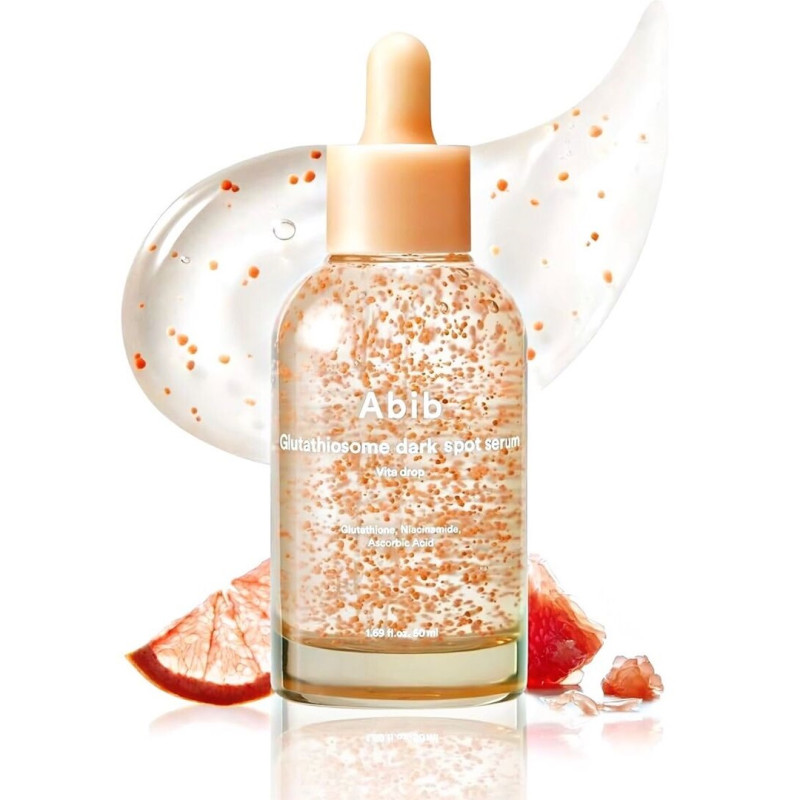 Осветительная сыворотка с микрокапсулами Abib Glutathiosome Dark Spot Serum Vita Drop предназначена для комплексного ухода: освещения, увлажнения и антивозрастного эффекта. Основание на воде, бутиленгликоли и ниацинамиде обеспечивает интенсивное увлажнение, улучшение тона кожи и укрепление ее барьера. Комбинация трех форм витамина С (аскорбиновая кислота, 3-O-этиласкорбиновая кислота, аскорбилглюкозид) вместе с феруловой кислотой и токоферолом (витамин E) мощно нейтрализует свободные радикалы, защищая кожу от старения.