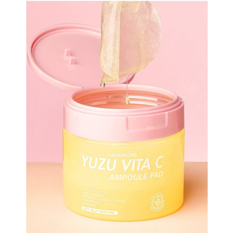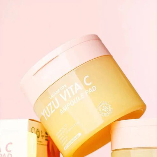 Осветляющие пэды для лица Lalarecipe Yuzu Vita C Ampoule Pad представляют собой уникальное средство для экспресс-ухода и преображения вашей кожи от корейского бренда Lalarecipe. Эти пэды для лица созданы для решения проблем тусклого тона, нежелательной пигментации и фотостарения. Продукт эффективно осветляет пигментные пятна, устраняет следы усталости и возвращает коже естественное внутреннее сияние. Пэды обильно пропитаны концентрированной сывороткой, которая не только тонизирует, но и ускоряет регенерацию клеток, укрепляя структуру эпидермиса. Использование этого средства помогает сделать микрорельеф кожи более гладким, а цвет лица — однородным и свежим уже после первых применений.