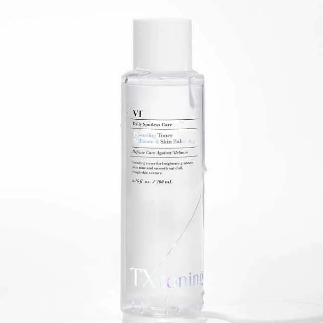 Осветительный тонер с транексамовой кислотой и ниацинамидом VT Cosmetics Tx-Toning Toner создан на основе тщательно подобранных природных и эффективных составляющих, гармонично сочетающихся для достижения непревзойденного результата. Ее уникальная формула бережно заботится о вашей коже, насыщая ее влажной и жизненной силой. Благодаря присутствию ценного витамина B3 кожа становится более упругой и сияющей, а ее природный барьер укрепляется, защищая от неблагоприятных внешних факторов. Экстракт азиатской центеллы, известный своими заживляющими свойствами, помогает уменьшить раздражение и улучшить общее состояние кожи, делая ее гладкой и бархатной.