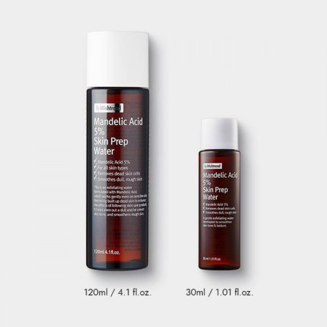Тоник для лица Mandelic Acid 5% Skin Prep Water - средство, созданное для мягкого ухода за кожей. В составе есть миндальная кислота, которая эффективно осветляет пигментные пятна, выравнивает текстуру кожи и регулирует секрецию себума. В составе есть пантенол, который успокаивает раздражение, глубоко увлажняет и способствует регенерации кожного покрова. Экстракт корня солодки оказывают противовоспалительное, осветляющее и подтягивающее действие. Тоник нежно отшелушивает кожу без раздражений, успокаивает воспаления и покраснения. Средство от By Wishtrend - тонизирует и выравнивает тон лица, способствует обновлению клеток эпидермиса для здорового вида, подходит для ежедневного пользования.