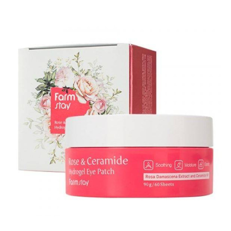 Патчи FarmStay Rose & Ceramide Hydrogel Eye Patch - обеспечивают глубокое увлажнение нежной кожи под глазами, снимают отёчность и уменьшает проявления синячков. Активно восстанавливают дерму, разглаживают морщинки и заломчики, повышают упругость эпидермиса.