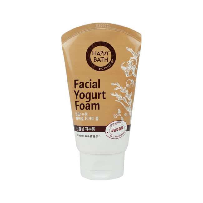 Happy Bath Real Mild Facial Yogurt Foam - йогуртовая пенка со злаками для чувствительной кожи, которая имеет приятную мягкую консистенцию. Средство отлично справляется с очищением кожи от повседневных загрязнений и декоративной косметики (можно использовать для снятия макияжа с кожи век). Натуральные эссенции, которые входят в состав продукта, бережно заботятся о коже лица, питают её и смягчают, дарят свежий и сияющий вид.