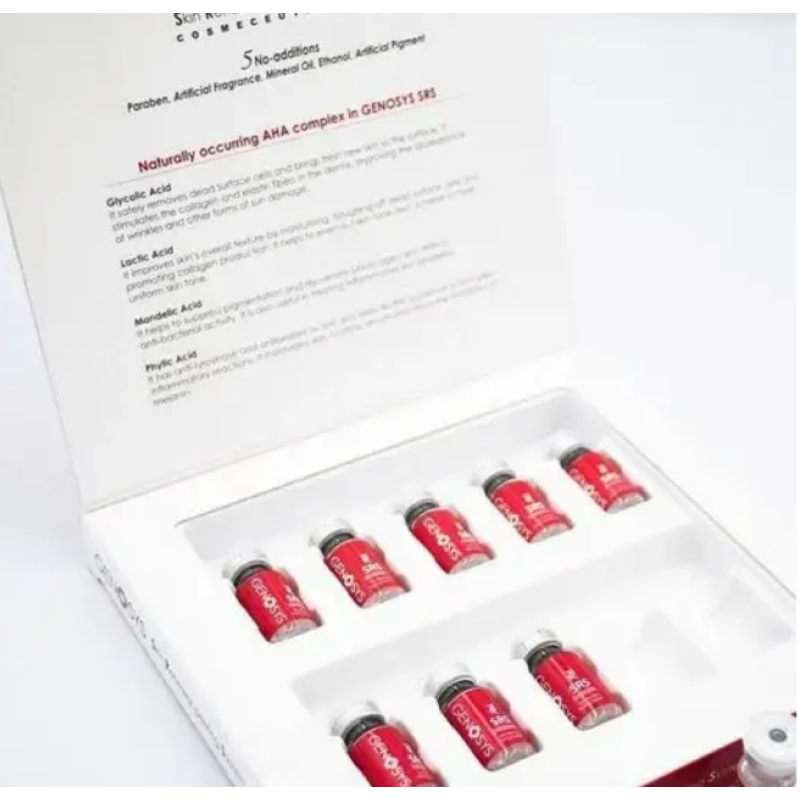 Пилинг GENOSYS SKIN RENEWAL PEELING SYSTEM - это профессиональное средство с мощными активными компонентами, которые ускоряют обновление кожи, делая ее гладкой, сияющей и свежей. Средство прекрасно отшелушивает отмершие клетки, способствует восстановлению кожи, осветляет пигментацию и устраняет следы постакне. Состав средства не содержит парабенов, минеральных масел, спирта, а состоит из аминокислот, которые мягко отшелушивают кожу и обновляют ее. Гликолевая кислота - стимулирует выработку коллагена и эластина, возвращает коже упругость. Молочная кислота - интенсивно увлажняет, осветляет и выравнивает тон. Миндалевая кислота- проявляет антибактериальный эффект, помогает устранить пятна и неровности. Фитиновая кислота- мощный антиоксидант, который защищает от свободных радикалов и от негативного воздействия окружающей среды. Комплекс белка стимулирует регенерацию кожи и ускоряет ее обновление. Пилинг обеспечит комплексный уход, на основе увлажнения кожи, выравнивания тона и борьбы с воспалениями. Средство от Ԍепоѕуѕ оказывает размягчающее действие на эпидермис, устраняет недостатки при минимальном времени после процедуры.