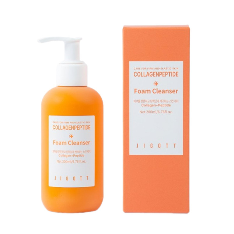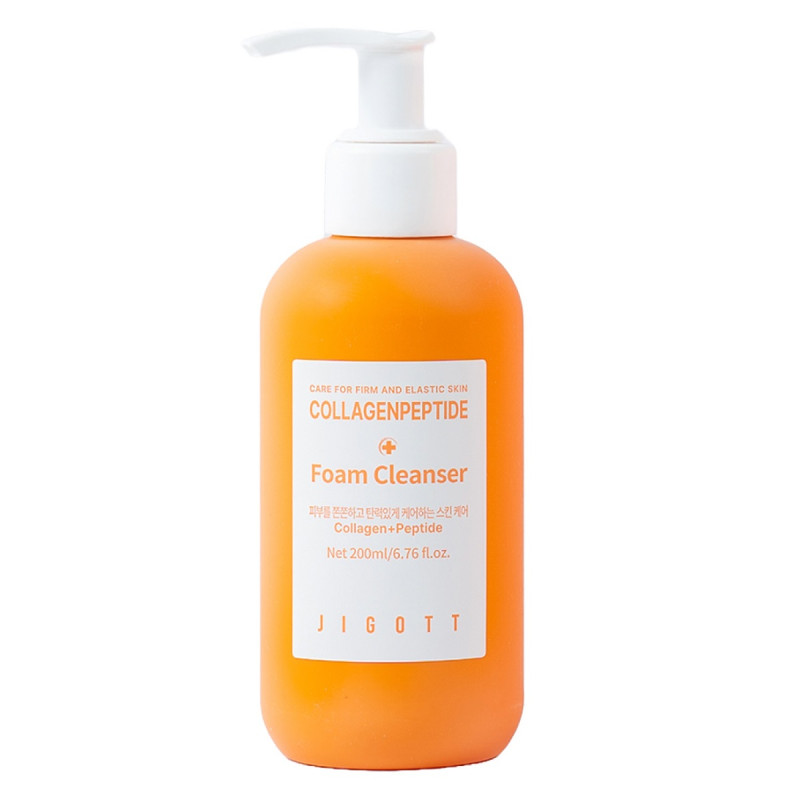 Пенка для умывания Jigott Collagen Peptide Foam Cleanser бережно и эффективно удаляет загрязнение, избыток себума и остатки макияжа, не нарушая естественный баланс кожи.