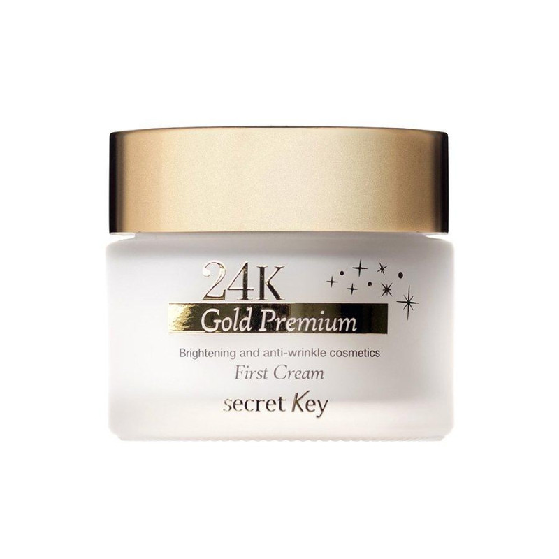 Антивозрастной крем для лица SecretKey 24K Gold Premium First Cream имеет ярко выраженный омолаживающий и восстанавливающий эффекты. Глубоко насыщает кожу, выравнивая даже заметные, глубокие морщины. Имеет нежную структуру, равномерно наносится и быстро впитывается, насыщая кожу энергией и сиянием.