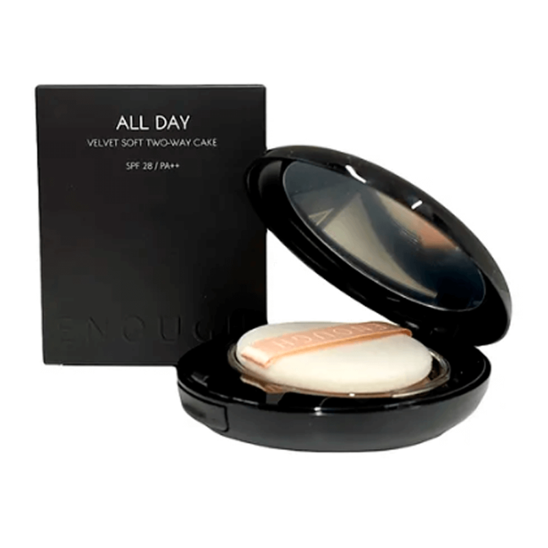 Пудра для лица Enough All Day Velvet Soft Two-Way Cake SPF 28 PA++#13 имеет легкую текстуру, матирующий эффект и уход за свойствами, обеспечивая равномерное покрытие и комфортное ношение в течение всего дня. Благодаря тальку, кремнезему и нейлону-12 средство эффективно поглощает избыток себума, устраняя жирный блеск и оставляя кожу бархатистой и гладкой. Слюда в составе придает природному сиянию, предотвращая эффект "пудрости" и делая финиш более живым.